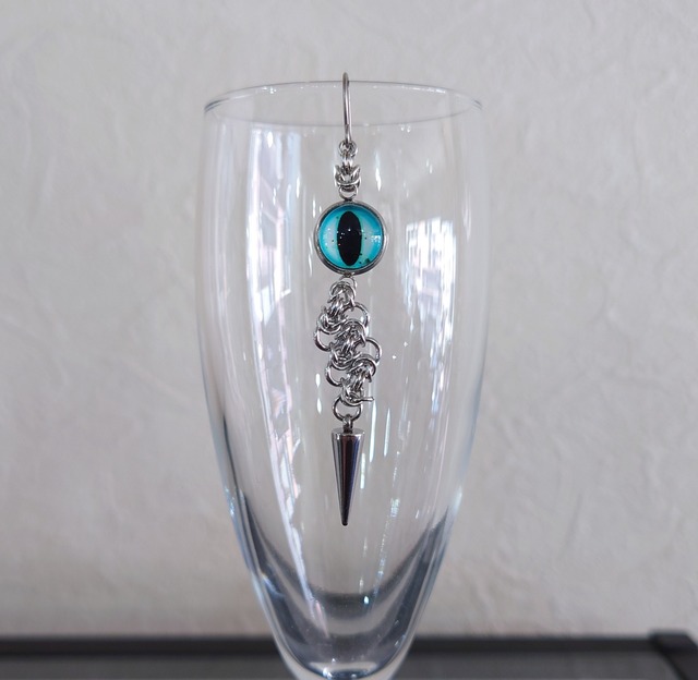 ※こちらは一個売り(片耳用)になります。 ビザンチンメイル3連にカラフルな目玉とスパイクチャームを合わせた、少しホラーでゴシック&パンクなデザインです。 丸カンカラー:ロジウムシルバー 目玉のカラー:ブルー ピアスフック:チタン(金属アレルギー対応) サイズ:長さ約6cm お店では色々な種類のチェーンメイルアクセサリーを製作、販売しています。 オーダーメイドやカスタムも行っていますので是非お店にご来店、遊びに来て下さい! チェーンメイルアクセサリー Nocturnal 奈良市南市町4 植畑ビル2階 10時30分~19時 定休日 月曜日(祝日は営業) ☎️080-1408-1167 購入の際の注意点 *チェーンの部分が、ニットなどに引っかかる場合があります、お取り扱いにはご注意下さい。 *1つ1つ手作りで繊細な作りになっております。お取り扱いにはご注意下さい。 *金属アレルギー、メッキ加工が肌に合わない方はご注文をお控え下さい。 *ご覧頂いている環境・モニターにより、画像と実物の色が多少異なって見える場合があります。ご了承下さい。
