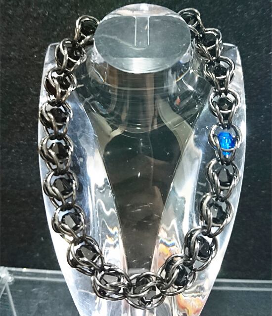 丸カンの中に、プレシオサ社チェコクリスタルビーズを封じ込めた人気のチェーンメイル・ブレスレットです。