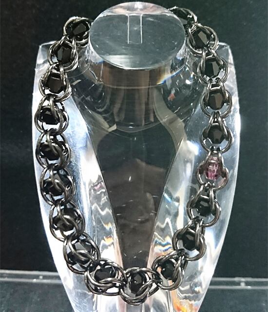 丸カンの中に、プレシオサ社チェコクリスタルビーズを封じ込めた人気のチェーンメイル・ブレスレットです。