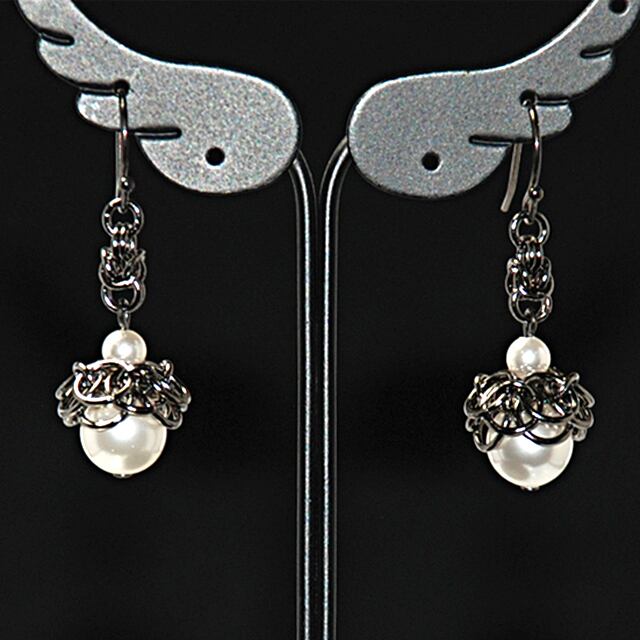 どんぐりのような可愛いデザインの新作ピアス&イヤリングのブラックバージョンです。丸カンがブラックでゴシックな雰囲気です。