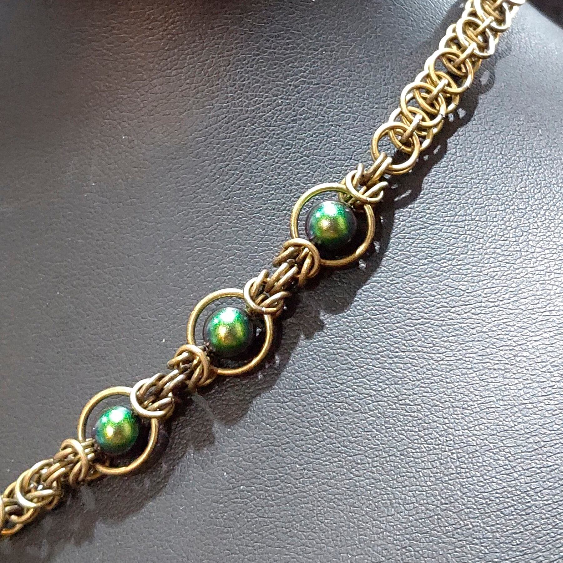 お店では色々な種類のチェーンメイルアクセサリーを製作、販売しています。