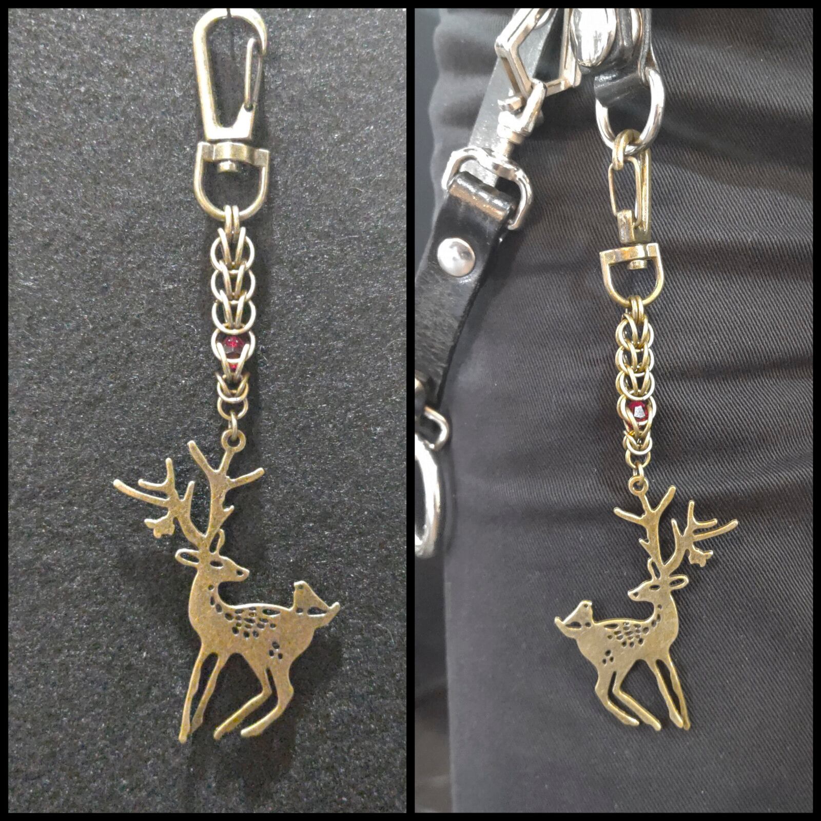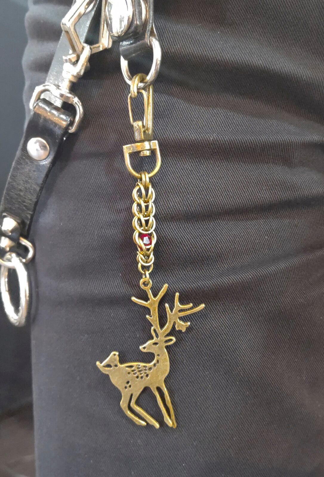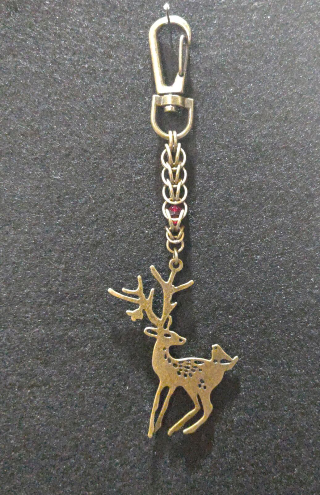 鹿モチーフのビッグチャームにフルペルソアンメイル、サイバーメイルを組み合せたインパクト大のチェーンメイルキーホルダーです!
