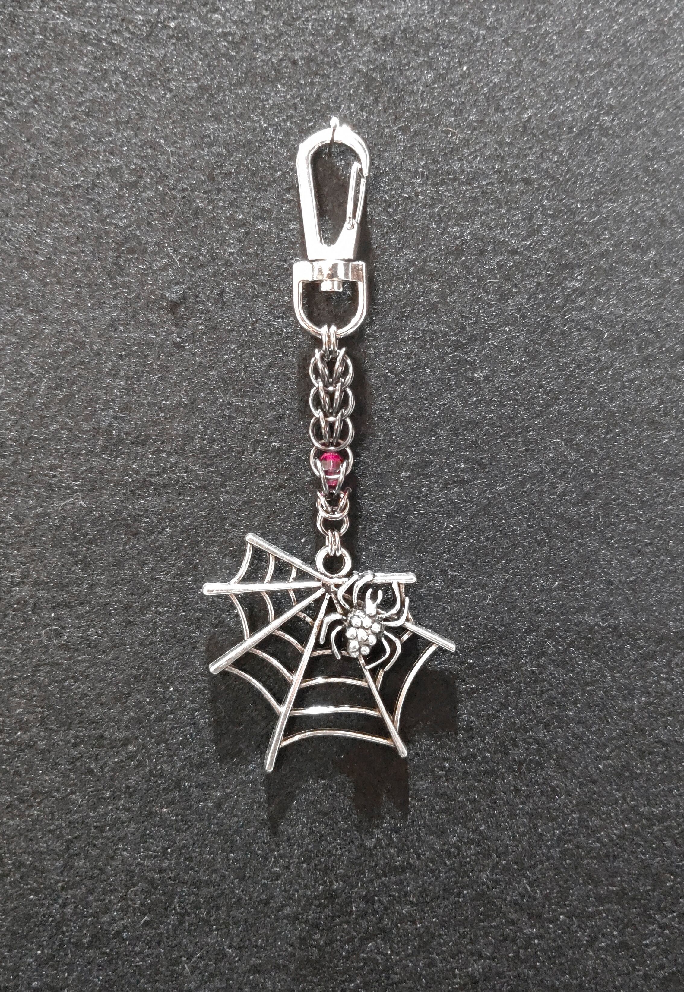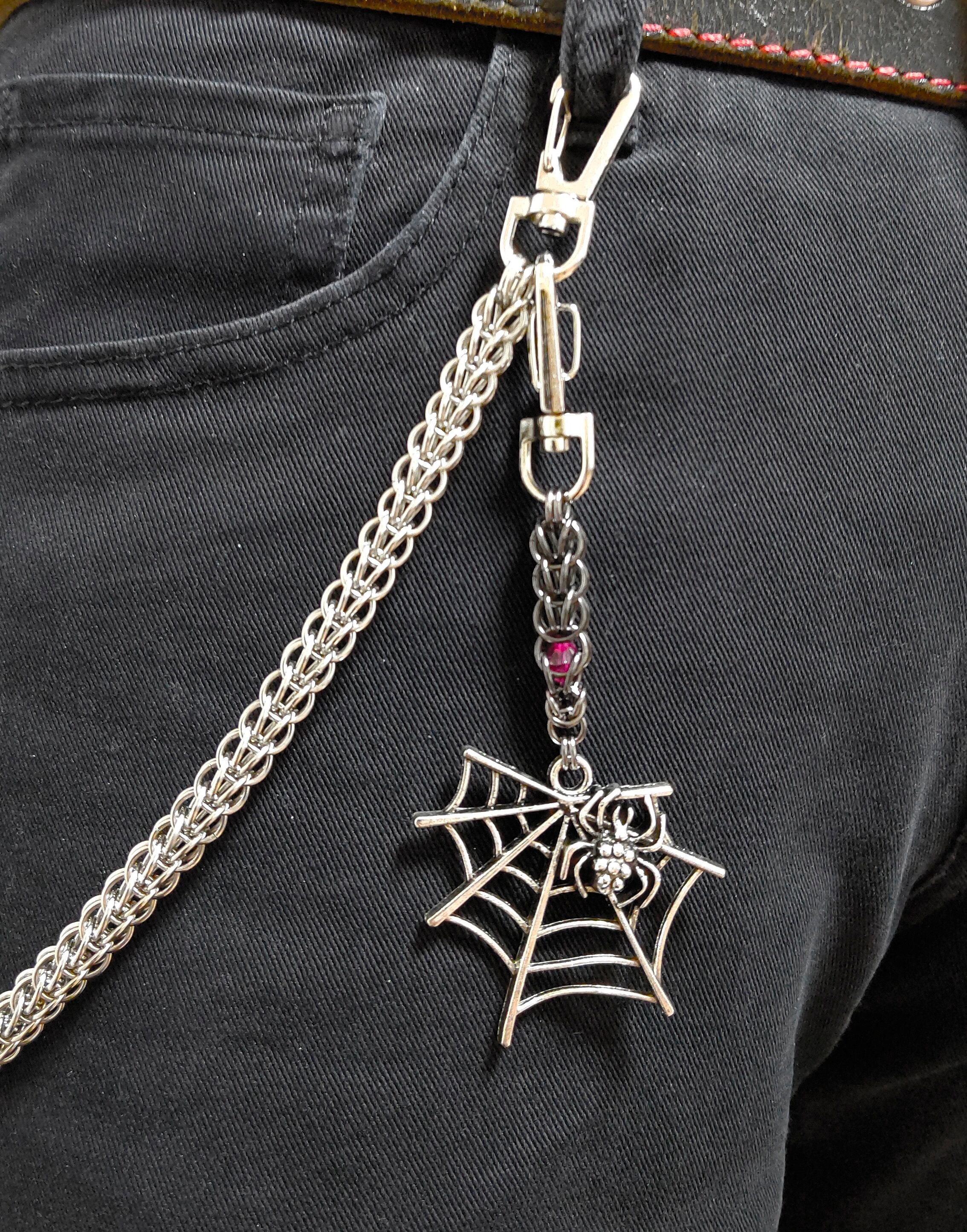 蜘蛛の巣モチーフのビッグチャームにフルペルソアンメイル、サイバーメイルを合わせたインパクト大のチェーンメイルキーホルダーです!
