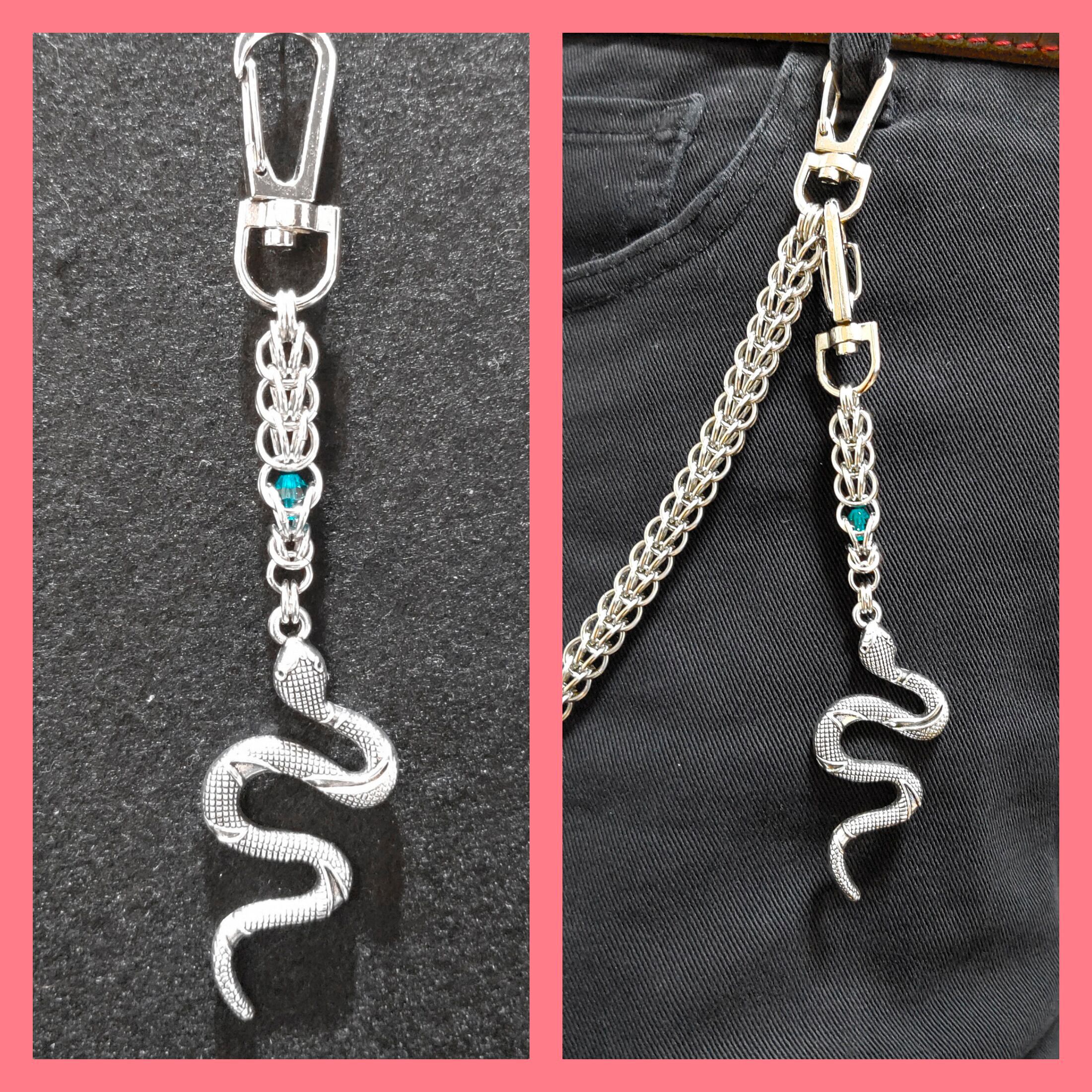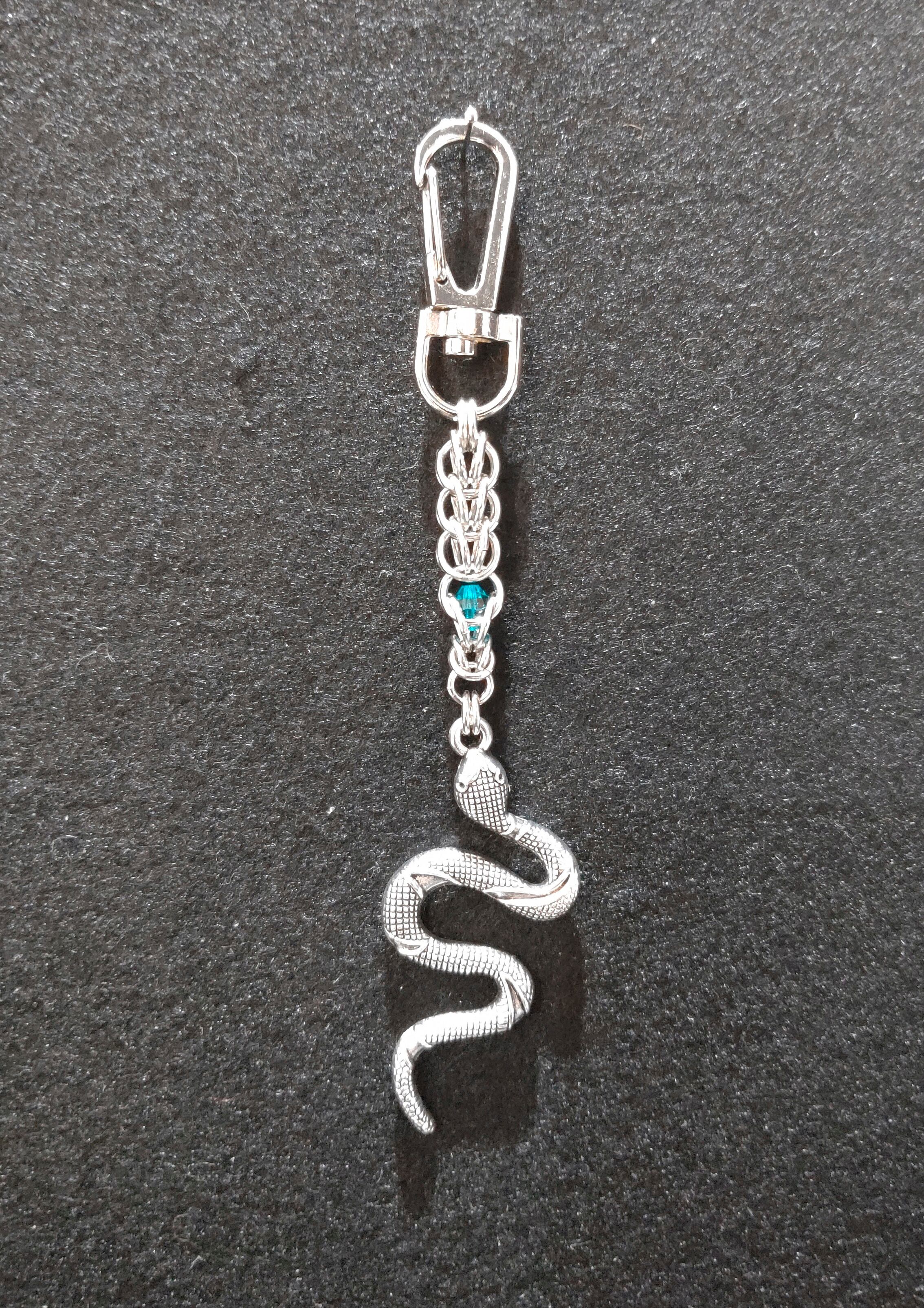 スネークモチーフのビッグチャームにフルペルソアンメイル、サイバーメイルを合わせたインパクト大のチェーンメイルキーホルダーです!