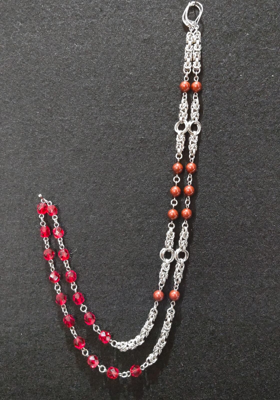 メビウスメイル&ビザンチンメイルにスワロフスキークリスタルパールとチェコビーズを合わせました。