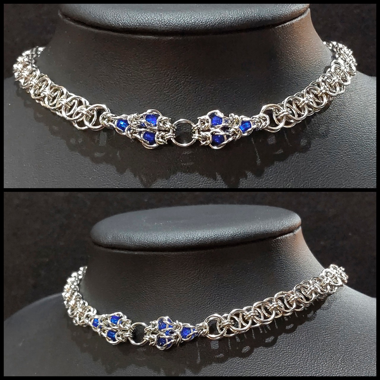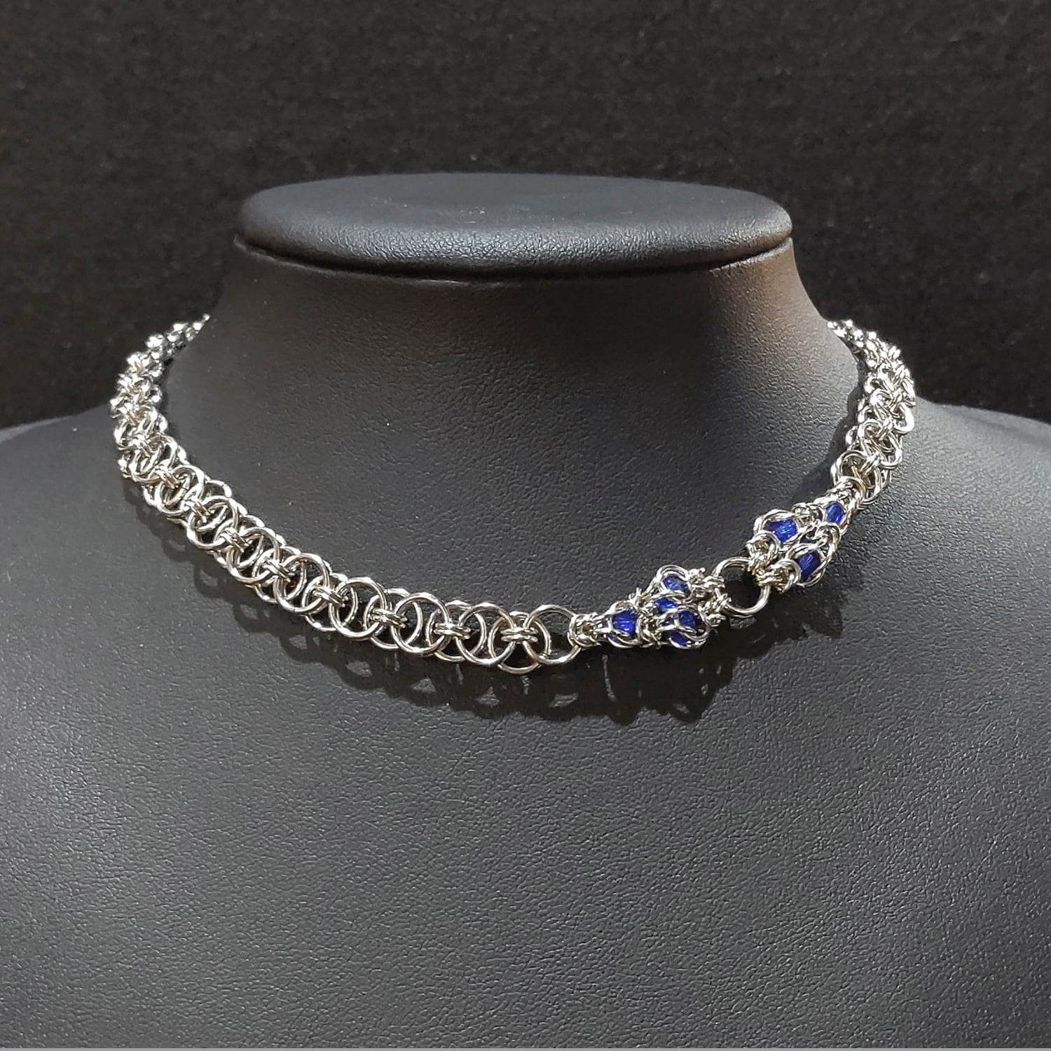 トップは丸カンでスワロフスキークリスタルを閉じ込めたサイバーメイル、