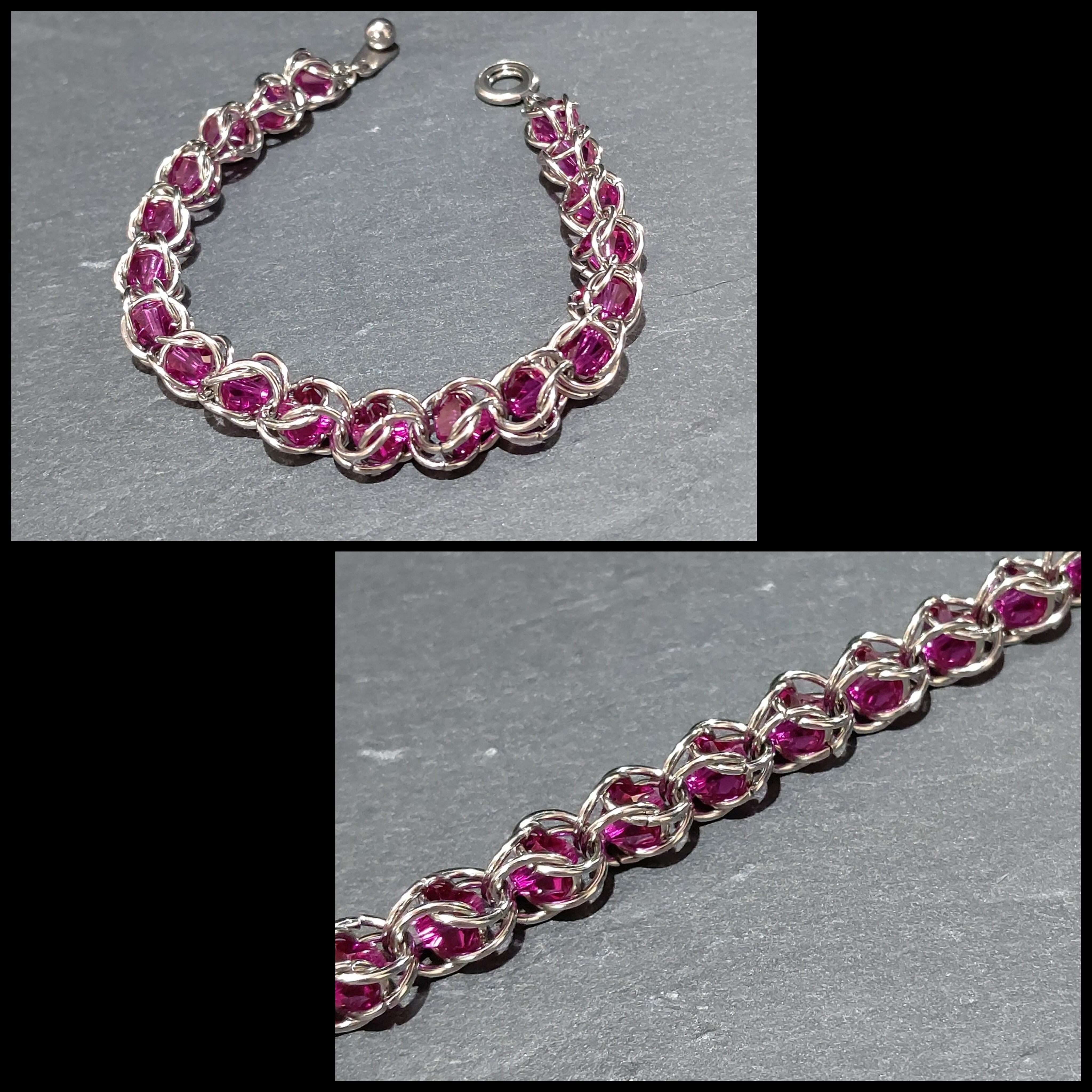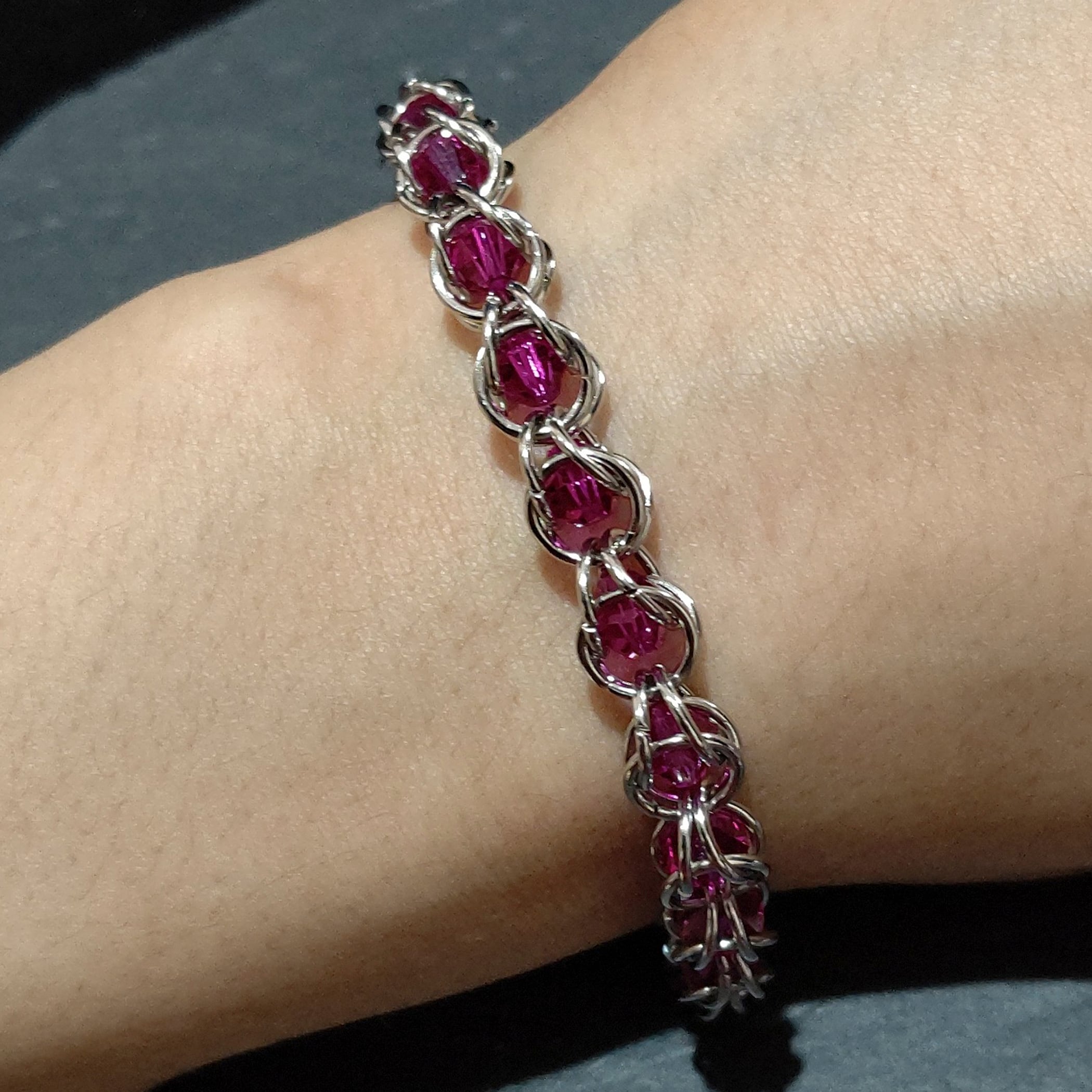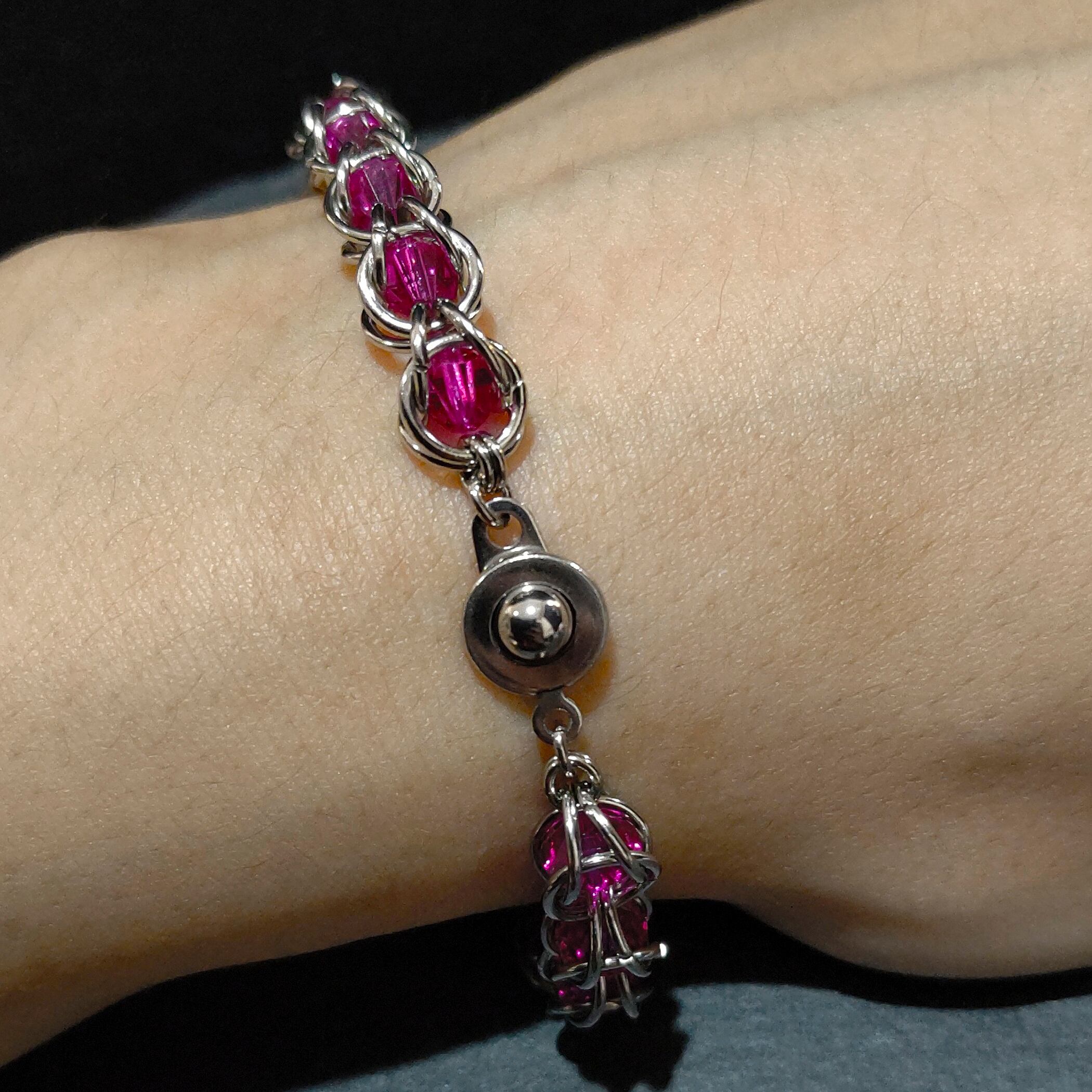 丸カンでビーズを閉じ込めた当店一番人気のサイバーメイルブレスレットに金属アレルギー対応タイプが新たに加わりました!